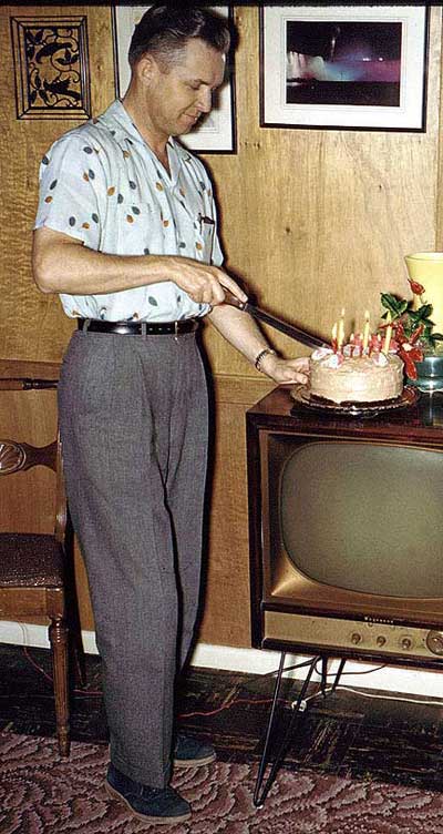 Here, he’s celebrating a birthday at the north end of our living room in San Bernardino. Apparently his. If I count candles correctly, perhaps his 36th. Of the myriad of puns that have perfused my existence, perhaps the earliest one that has found a (thus far) permanent synaptic niche is somebody’s observation that Jim had “dunaway” with Our Little Oophie…