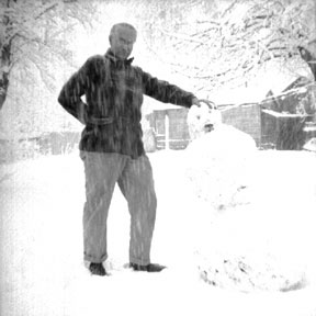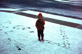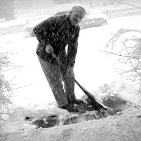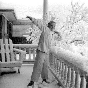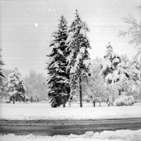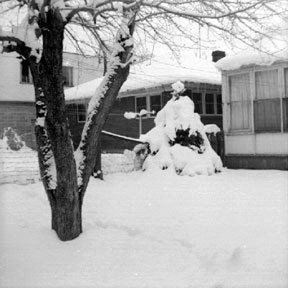 | That same year, 1954, we came to visit. Probably at Christmas, and just in time for a substantial snowstorm. For us southern Californians, this was sufficiently a novelty that I was moved to record it with my treasured Brownie Hawkeye camera. |
