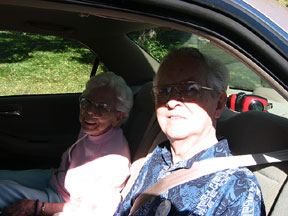 We took these shots on Sun Yat Sen Day, October 10, 2003. As of which date somebody else lives here. Ruth and Jim had moved to the Seville in Orem for “assisted living” and hadn’t seen their lifelong home in a couple of years. So, we had an outing. That’s the two of them, in the back seat of Eleanor, our 2000 Honda LX, parked in front of the old homestead. |