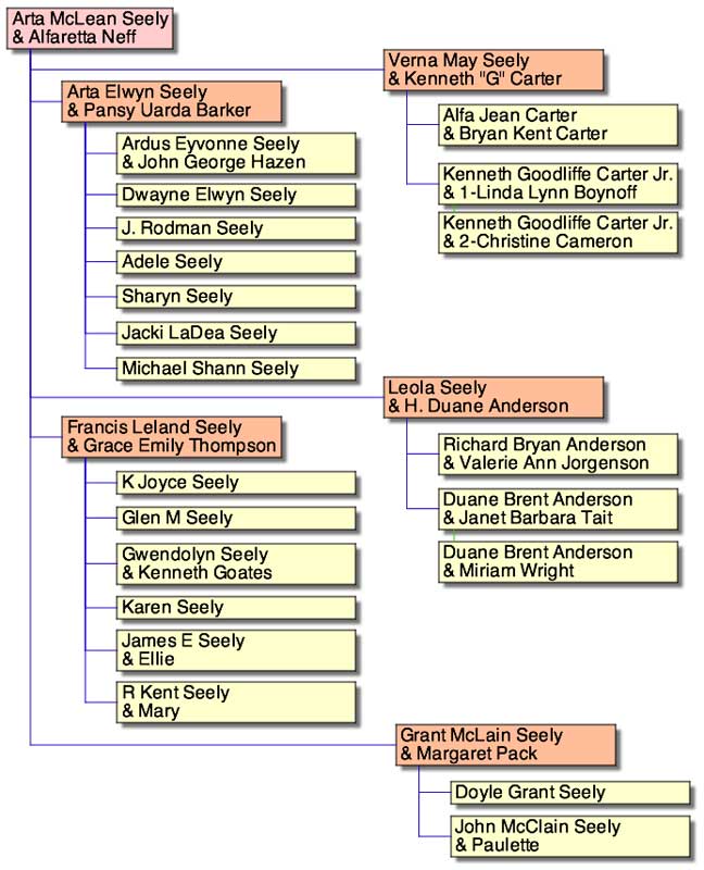 As on the Anderson side, I’ve been blessed by association with Mammy’s more-numerous Seely relatives; here’s how the ones I’ve mentioned thus far fit together. This table may yet grow, particularly to include younger family members, as I try to capture the flavor of more recent interactions.1 Until then, it aims to reflect my own acquaintanceship and the content of this growing document.