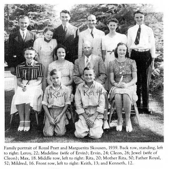 Royal Pratt Skousen and Rita Bentley Skousen, distinguished pioneers1 of the San Bernardino “Mormon” community, had a lovely home on Waterman Avenue, just a couple of blocks south of our homestead. As a small child, I thought their place downright palatial. Here’s their family in 1939, seven years before we moved into their neighborhood.