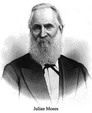 | The first man known to have taught a school in Utah, or in the region now bearing that name, was the late Julian Moses, of East Mill Creek, Salt Lake county. He was a native of Norfolk, Connecticut, and was born April 11. 1810. His father and mother, Jesse and Esther Brown Moses, were both descended from old Puritan families. Julian’s early boyhood was passed at home with his parents, who were considered wealthy for those times. They owned a large farm and dairy, and were very thrifty people. As a lad he was delicate, and even in manhood never became robust. When quite young he was sent to school; and this, according to his own statement, was much against his will, since his mother often accompanied him with a stick, to ensure his attendance. He acquired a good education in all the common branches, as well as considerable knowledge of the sciences and classics. |