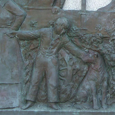 Our Uncle Isaac Perry Decker, “caboose son” of (3G) grandparents Isaac Decker and Harriet Page Wheeler, became famous at an unusually early age. He’s represented here in bronze on the face of the “This Is The Place” monument in Salt Lake City, holding his mother’s hand, but paying more attention to the dog, at the moment that Uncle Brigham Young said something like, “This is the right place; drive on.”