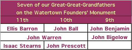 Parenthetically, a similar situation arises in the case of Watertown pioneer John Bigelow’s parents, Randall and Jane Baguley, whose immigrant daughter Elizabeth married Richard Butler in Cambridge in 1630. The Butlers, early residents of Hartford, became direct ancestors through our Seymour line. The parents, Randall and Jane, are our 8th GGP through Elizabeth’s shorter Butler line, and also our 10th GGP through that of son John. |