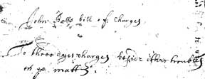 John Balls bill of charges To three dayes charges beside other troubles in the matter |